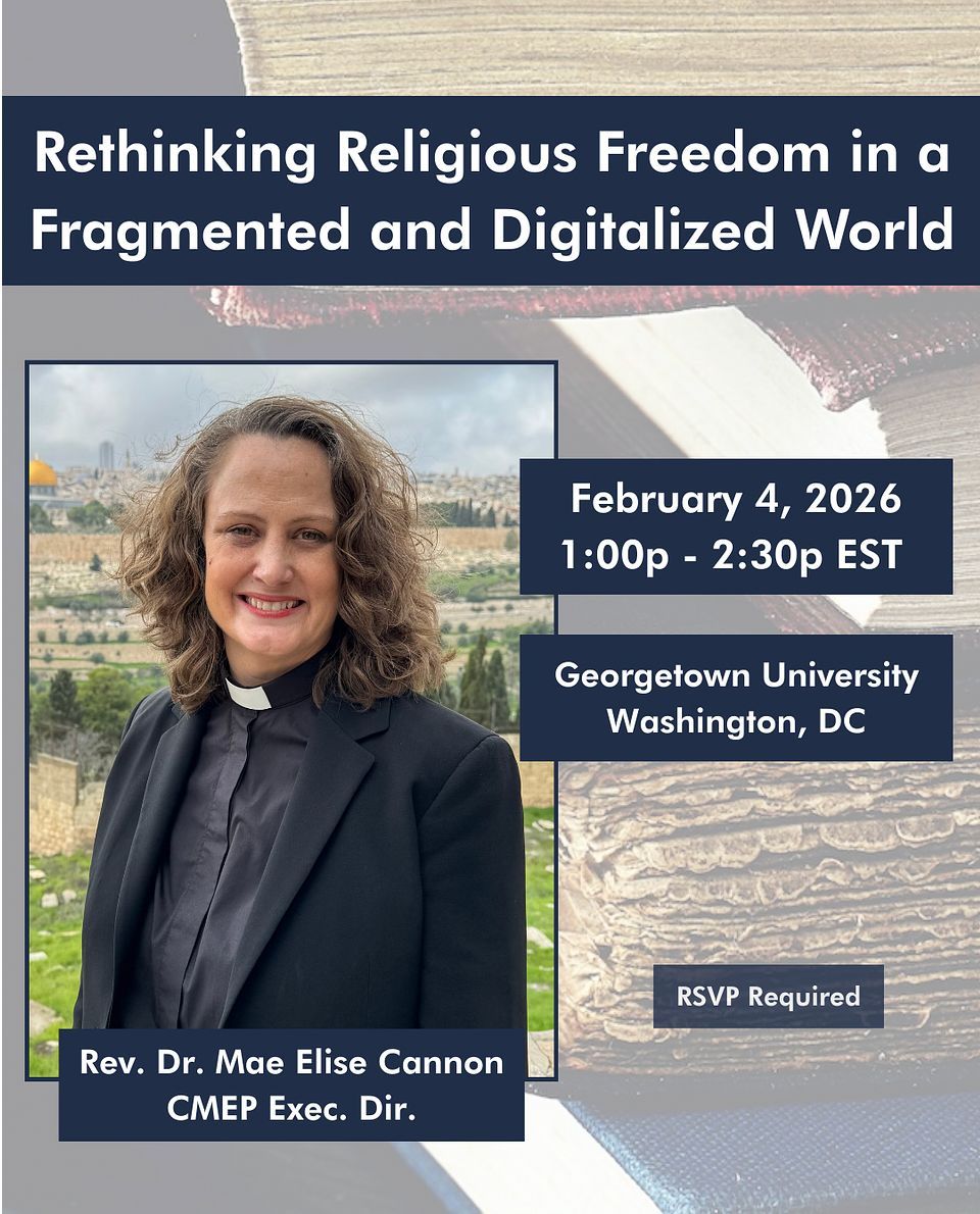 |  | January 30th News Bulletin Here’s what’s upcoming and what you may have missed at CMEP and in the news. | | | | 1. Israeli military accepts that 71,000 Palestinians were killed in Gaza war for first time, says report The Independent "The Israeli military has for the first time accepted figures released by Gaza’s health ministry showing that more than 70,000 Palestinians were killed during its war in the territory, according to a report. DF sources told Haaretz that the death toll has now been accepted by military officials. The figures are regarded as reliable by humanitarian organisations, including the United Nations." | | | | | | 2. Boys collecting firewood in Gaza killed by Israeli fire CNN "Two Palestinian boys have been killed by Israeli fire in Gaza while collecting firewood, according to their families. The boys were cousins: Mohammad and Suleiman Al Zawaraa. Mohammad was 14; Suleiman a year younger, according to hospital authorities. They were killed on Saturday morning and their bodies were taken to Al Shifa hospital. Video showed the distraught father of one of the boys cradling his body in his arms." | | | | | | 3. Israel says it has retrieved remains of final Gaza hostage BBC "The Israeli military says it has retrieved the body of the last hostage in Gaza, paving the way for the next phase of US President Donald Trump's peace plan to get under way. It had been searching for Master Sgt Ran Gvili since the ceasefire with Hamas began in October." | | | | | | 4. Hezbollah says Israeli strike killed Al-Manar TV presenter in southern Lebanon Reuters "The Lebanese armed group Hezbollah said on Monday that an Israeli strike in the country's south killed TV presenter Ali Nour al-Din, who worked for the group's affiliated Al-Manar television station. The group said the killing portends "the danger of Israel's extended escalations (in Lebanon) to include the media community". | | | | | | 5. Trump Says ‘Massive Armada’ Heading to Iran, Warns ‘Time Is Running Out’ to Make a Deal Time Magazine "President Donald Trump on Wednesday revived the threat of military action against Iran, declaring on social media that a “massive armada” of American forces was moving toward the country and warning “time is running out” for Tehran to agree to a deal limiting its nuclear program." | | | | | | 6. Mike Huckabee is interfering with the work and witness of churches in the Holy Land with a goal of silencing Palestinian Christians Mondoweiss "Last week, the Patriarchs and Heads of Churches in Jerusalem, the leaders of the historic churches in the Holy Land, issued a momentous statement clearly expressing their rejection of Christian Zionism. The statement was remarkable not only for its clarity but also for the moment of its release and the response it provoked from U.S. Ambassador to Israel Mike Huckabee, a vocal Christian Zionist. The episode highlights an emerging threat to the work and witness of the Palestinian church, as well as steps Christian Zionists are taking to erase our political voice." You can read the statement of the Patriarchs and Heads of Churches in Jerusalem on CMEP's website HERE. | | | | | | | | Holy Land Co-ordination: Stand with people of Holy Land, help foster dialogue Vatican News “The people of the Holy Land cry out for our help and prayers; they long for an end to their suffering. Stand with them. Recognise their plea for dignity. Help foster genuine dialogue between communities.” "This is the appeal launched by the Co-ordination of Bishops' Conferences in Support of the Church in the Holy Land, better known as the Holy Land Co-ordination (HLC), in a communiqué released on Thursday, January 22." CMEP Head of Advocacy and Government Relations Kyle Cristofalo traveled to the Holy Land to be a part of this initiative. | | | | | | The Rise of Populism: Implications and Complications for International Religious Freedom Institute for Global Engagement In "The Rise of Populism: Implications and Complications for International Religious Freedom," published through the Institute for Global Engagement, Rev. Dr. Mae Elise Cannon shares the findings from her academic article, "Populism, Nationalism, and Civilizationism: Implications and Complications for Religious Freedom,” originally published in The Review of Faith and International Affairs. Writing for a broader audience, she examines how the global rise of populism, rooted in nationalism and civilizationalist rhetoric, threatens religious freedom and democratic pluralism. Drawing on global examples, the piece shows how privileging dominant religious identities fuels exclusion, sharpens “us versus them” politics, and undermines protections for religious minorities. | | | | | | Research on Religious Freedom and Security: What We Know—and Don’t Know Institute for Global Engagement This piece is written by CMEP AWCF Dr. Scott Gustafson "Religious freedom is more than a moral ideal. It is a measurable factor shaping national trajectories, social cohesion, and long-term peace. Religious freedom intersects in critical ways with issues of security, extremism, and terrorism. Contrary to secularization theories, religion is on the rise with 75% of the globe expressing some kind of religious affiliation. With this increase comes a challenge. " | | | | | | Still Active: ACTION ALERT "Block the Bombs Act" On May 21st, 2025, House Resolution 3565 was introduced to the U.S. House of Representatives, also known as the "Block the Bombs Act." The resolution calls for a limit on the sale of bombs, ammunition (including white phosphorus), and ammunition manufacturing capability. The act comes as Israel has strengthened its assault on Gaza and the West Bank, with an estimated death toll since October 7th, 2023 standing at 54,000 Palestinian men, women, and children. Congress needs to pressure the Trump Administration to protect Palestinian civilians through the passage of HRes. 3565. Your voice can push your repr